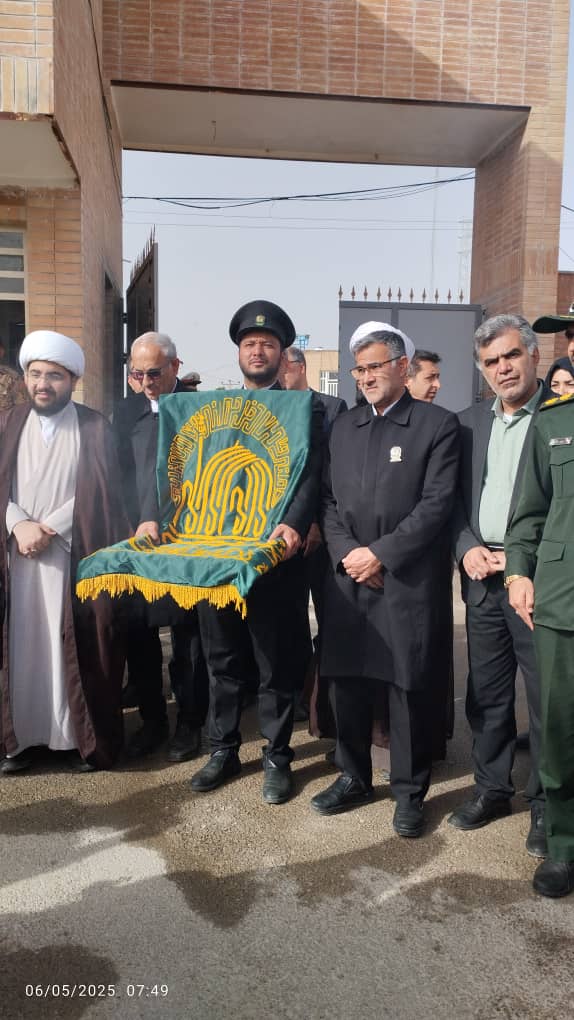 مراسم صبحگاه مشترک نیروهای نظامی – انتظامی شهرستان باغملک با حضور کاروان زیر سایه خورشید ، آستان قدس رضوی برگزار شد .
